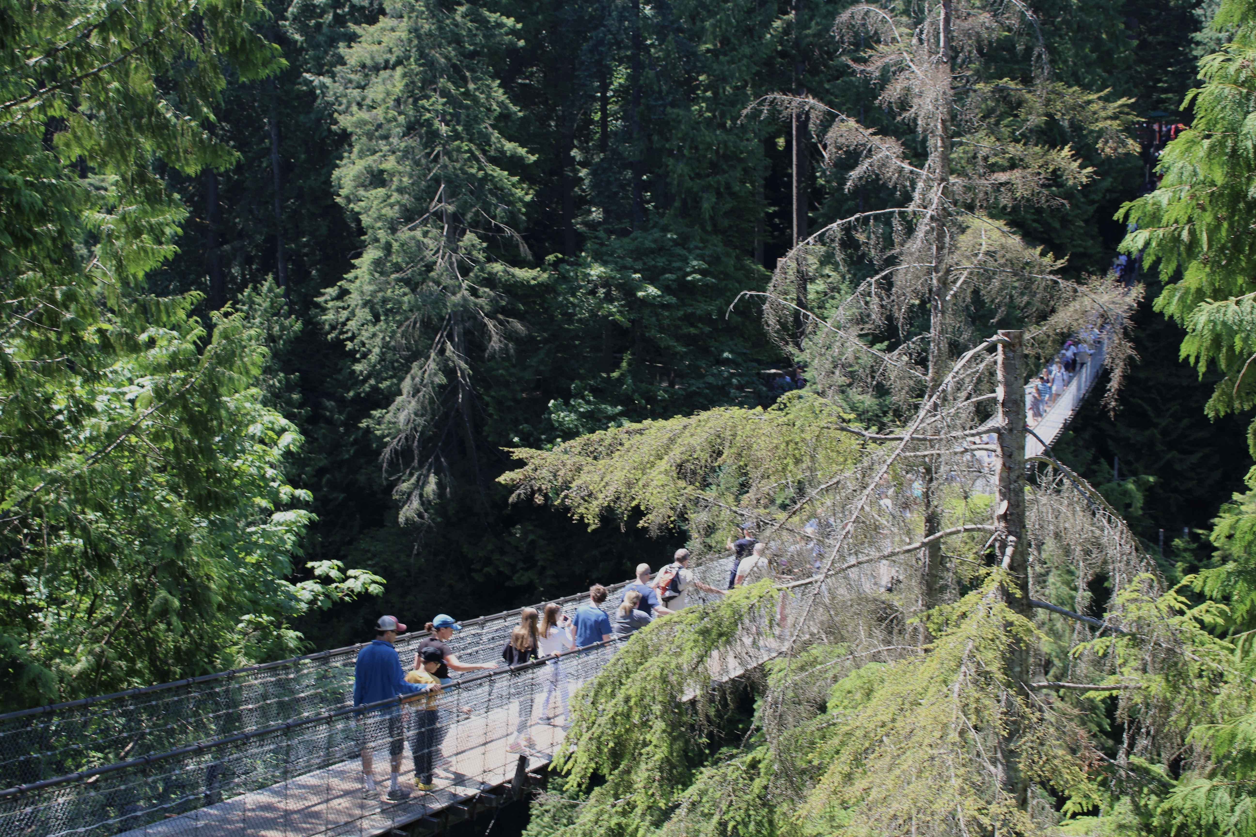 Unfortunately, wheelchairs or crutches are not permitted on the Capilano Suspension Bridge, the Treetops Adventure or the Cliffwalk.